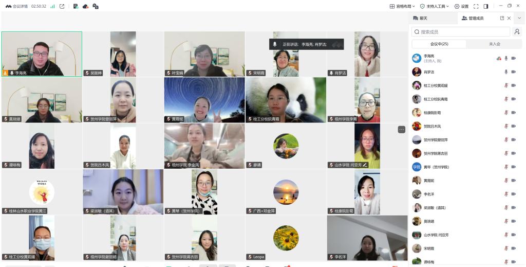 为深入推进广西高校“心理健康教育互助共建大行动”,切实提升高校心理咨询师的专业素养与临床服务能力,12月16日晚,桂林理工大学工作组2025年秋第二次心理咨询案例督导活动在线上顺利举行。本次团体督导活动由桂林理工大学心理中心主任肖梦洁主持,特邀中国心理学会临床心理注册系统注册督导师、江西师范大学心理学院叶宝娟教授担任督导师,来自桂林理工大学、桂林医科大学、梧州学院、贺州学院、柳州城市职业学院、广西物流职业技术学院、桂林山水职业学院及桂林生命与健康职业技术学院的专兼职心理咨询师30余人参与了本次活动。
