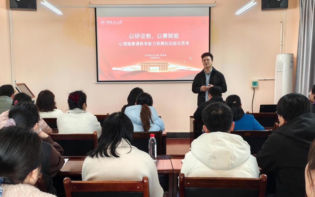活动邀请2025年广西高校大学生心理健康教育教师教学能力大赛特等奖获得者、我校马克思主义学院辅导员张劲彪老师现场分享,他围绕“以研促教,以赛赋能”主题,结合“我的大学我做主-大学适应”备赛专题,沉浸式分享教学设计与实践技巧。他结合大学生开学适应期心理特点,拆解选题逻辑、教学环节设计与落地细节,分享如何将学情需求、案例教学与互动体验深度结合,以及备赛中打磨教学细节、提升课堂感染力的实战经验,为参会教师提供了鲜活可借鉴的教学范本。