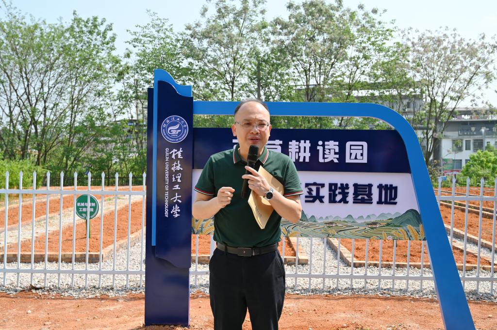 为深入学习贯彻习近平总书记关于劳动教育的重要论述,更好地引导广大同学“以劳树德、以劳增智、以劳强体、以劳育美”,推动“五育并举”育人方针落地见效,4月10日下午,我校在雁山校区顺利举行2026年“百草耕读园”劳动教育实践基地开耕仪式。学校党委常委、副校长唐壮东出席仪式并讲授劳动教育思政微课。学工部(处)、教务处、后勤处、校团委相关负责人,各学院分管学生工作党委副书记、辅导员代表及学生代表参加活动。