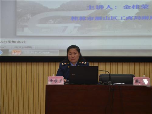 桂林市雁山区工商局副局长金桂荣到我校作报告
