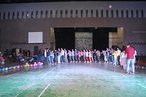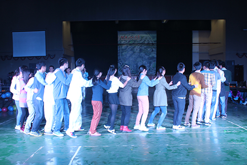 舞会中还穿插了集体互动环节,在场的所有同学一同来到舞池中间,集体演绎