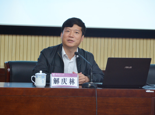11月13日上午,解庆林校长在雁山校区图书馆报告厅为全校学生工作干部、2013级班主任作学生工作辅导报告。解校长结合自己担任班主任工作的经历,从学生工作的性质、学工干部如何做好学生的工作、做班主任工作的几点体会、学工干部如何规划自己的未来等四个方面与参会人员分享了自己从事学生工作的心得体会。报告会由赵君副书记主持。