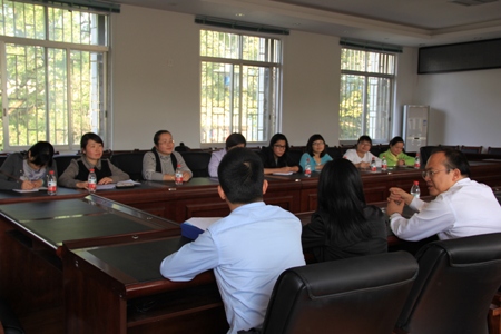 10月25日下午3:00,桂林航天工业学院学工处刘莉湘君副处长带领专兼职心理咨询员共8人前往我校心理健康教育与咨询中心进行实地考察与交流。我校学生工作部(处)唐壮东部(处)长,心理咨询中心主任谭咏梅老师、邝宏达老师及勤工助学办公室邓炼老师出席了交流会。 会上,唐壮东部(处)长首先为桂林航天工业学院的各位老师简要介绍了我校心理健康教育工作的指导思想、开展情况及特色亮点;接着,两校老师就心理咨询室的建设与发展做了深入的交流和探讨,并观摩了我校屏风校区心理咨询中心及心灵会所;最后,在我校管理学院欧阳胜权副书记的引领下,各位老师参观了管理学院心灵驿站。此次考察,加深了两校间的工作交流,并有助于下一步的沟通与合作。