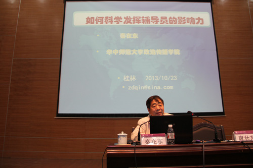 学校党委副书记、纪委书记赵君,自治区高校工委宣传部部长、教育厅思政处处长李美清,华中师范大学政治传播学院院长、马克思主义学院院长秦在东,自治区高校辅导员培训和研修基地负责人、广西大学学工部(处)部(处)长冼季夏,教育部辅导员培训和研修基地(广西师范大学)负责人、广西师范大学学工部(处)部(处)长唐文红出席了研讨班并为研讨班学员授课。我校全体辅导员旁听了研讨会专家报告和辅导员交流发言。