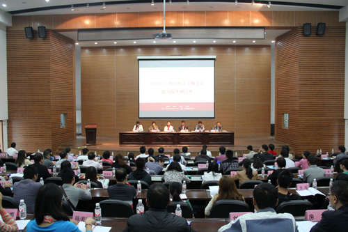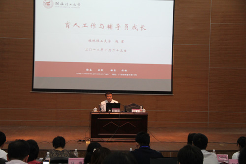 加强我区高校辅导员骨干的培养培训工作,增进骨干辅导员之间的沟通与交流,研讨提升辅导员职业能力,受自治区教育厅委托,10月23至25日,我校成功承办了2013年广西高校骨干辅导员能力提升研讨班。第二届全区高校辅导员技能大赛一、二、三等奖获得者、全区高校2012年度优秀辅导员和各高校推荐的辅导员骨干共110多人参加了研讨培训。