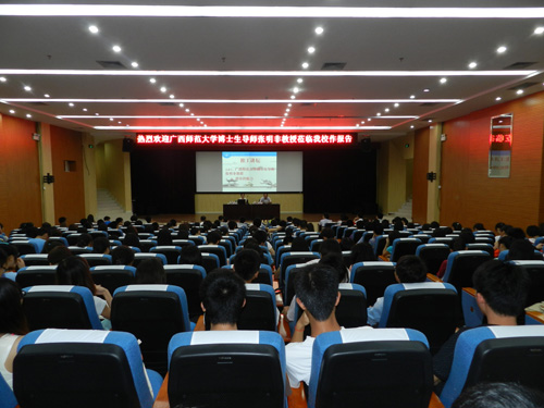 6月13日晚,广西师范大学文学院博士生导师、广西优秀专家、原中国唐代文学学会副会长张明非教授应邀做客“桂工讲坛”,在雁山校区图书馆报告厅为我校师生作了一场题为“唐诗的魅力”的学术报告。学校师生近300人聆听了报告会,学工部(处)唐壮东部(处)长主持报告会。