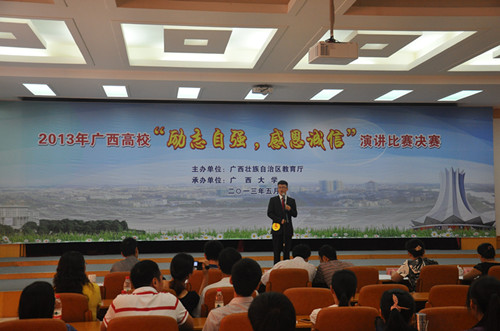 日前,广西高校“励志自强,感恩诚信”演讲比赛决赛结果揭晓。我校材料科学与工程学院2012级韦宇同学凭借着扎实的演讲技巧沉着应战,在决赛过程当中表现出色,脱颖而出,获得了全区总决赛二等奖的好成绩。测绘地理信息学院2012级黄冬苑同学获得了优秀奖。