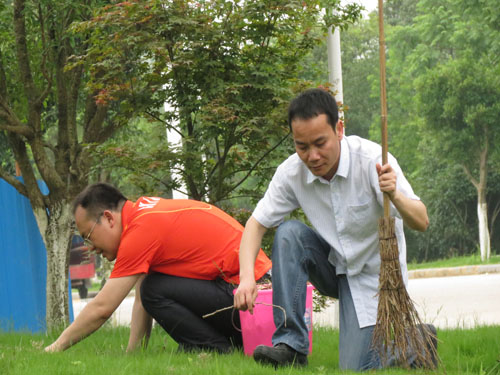 为积极响应自治区关于开展“美丽广西 清洁乡村”和学校关于开展校园环境卫生整治活动的号召,2013年5月21日下午,学工处、团委组织全体干部在雁山校区开展卫生和绿化责任区保洁活动。