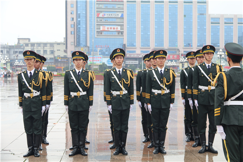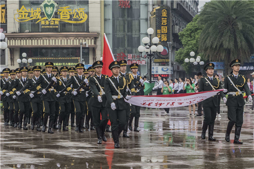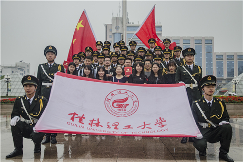 5月7日上午9时,第二届桂林市高校国旗班队列及升旗竞赛在桂林市中心广场举行。桂林市国防教育研究会的各位领导以及各高校国旗班指导老师出席了本次活动。来自桂林市7所高校的国旗班队员们以饱满的精神面貌投入了比赛。