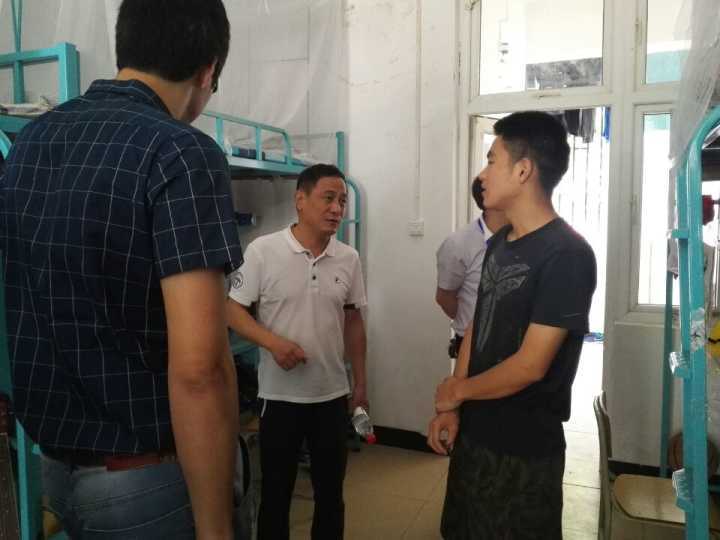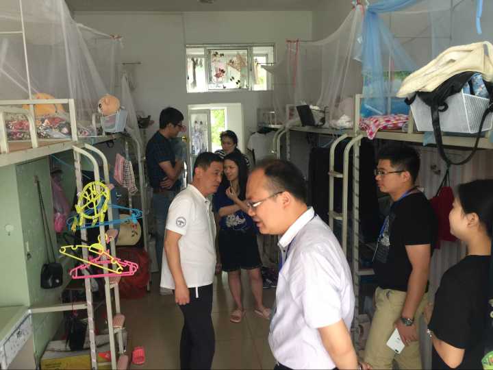 2017年5月28日上午,在学校副厅级调研员张劲松的带领下,学工部(处)部长唐壮东,团委副书记陈小波,环境学院副书记郝文佳,理学院副书记孙魏和其他学工干部一行到部分学生宿舍进行了卫生和安全检查。