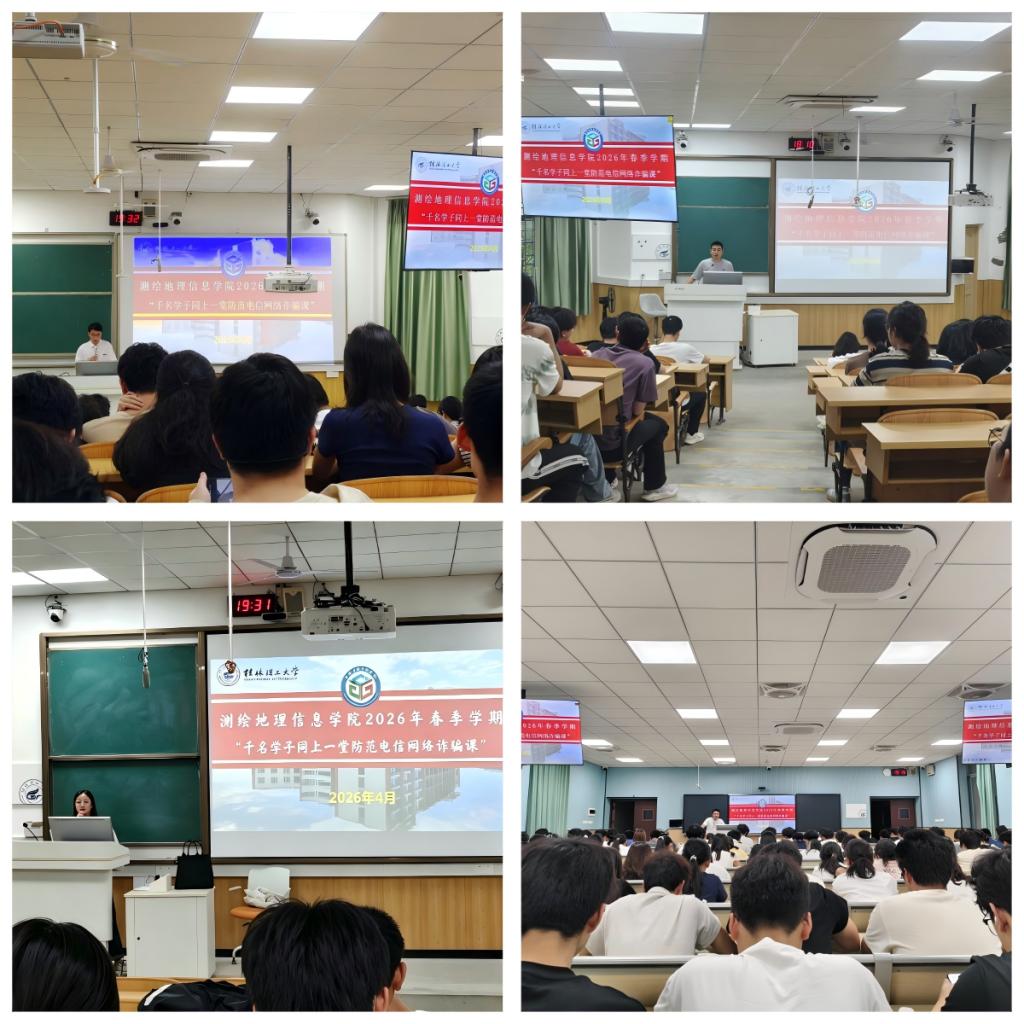 为切实增强学生防范电信网络诈骗意识与能力,守护学生财产安全,筑牢校园反诈安全防线,4月12日,测绘地理信息学院在雁山校区利用“大学生成长成才课”集中开展“千名学子同上一堂防范电信网络诈骗课”主题安全教育,全院学生共同参与学习。