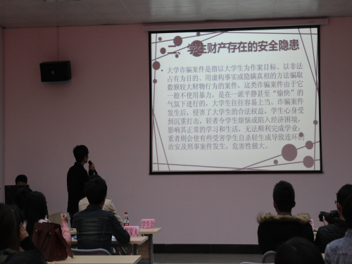 为了丰富安全教育的活动形式,提高广大同学的安全防范意识及安全事故应急处理能力。12月6日晚,艺术学院“艺家人”公益协会在雁山校区大学生活动中心宣讲室举办了第一届“大学生安全教育”PPT演讲大赛。艺术学院党委副书记张成龙、学工办全体辅导员以及高年级学生代表出席本次活动并担任评委,共收集21件作品。
