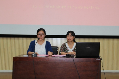 大会共四项议程:第一项、由校团委副书记白凌婷老师宣布表彰决定;第二项、为2013-2014年度的42名优秀班级心理委员颁奖;第三项、由优秀班级心理委员代表艺术学院服装2013-1班欧玉希同学发言;第四项、由心理咨询中心谭咏梅老师为2014年秋季学期班级心理委员培训班开班典礼致辞。