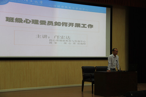 2014年10月17日晚8:00,班级心理委员培训班在雁山校区图书馆报告厅顺利开班,2014级全体班级心理委员参加了此次培训,心理健康教育与咨询中心邝宏达老师作《班级心理委员如何开展工作》主题讲座。